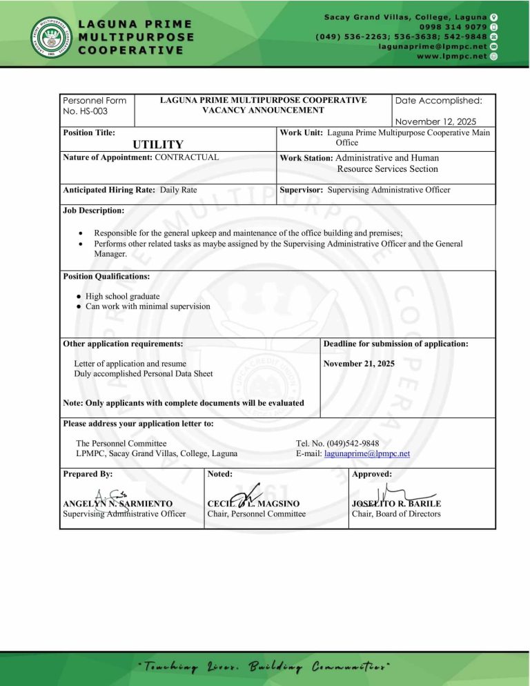 Work Unit: Laguna Prime Multipurpose Cooperative Main Office