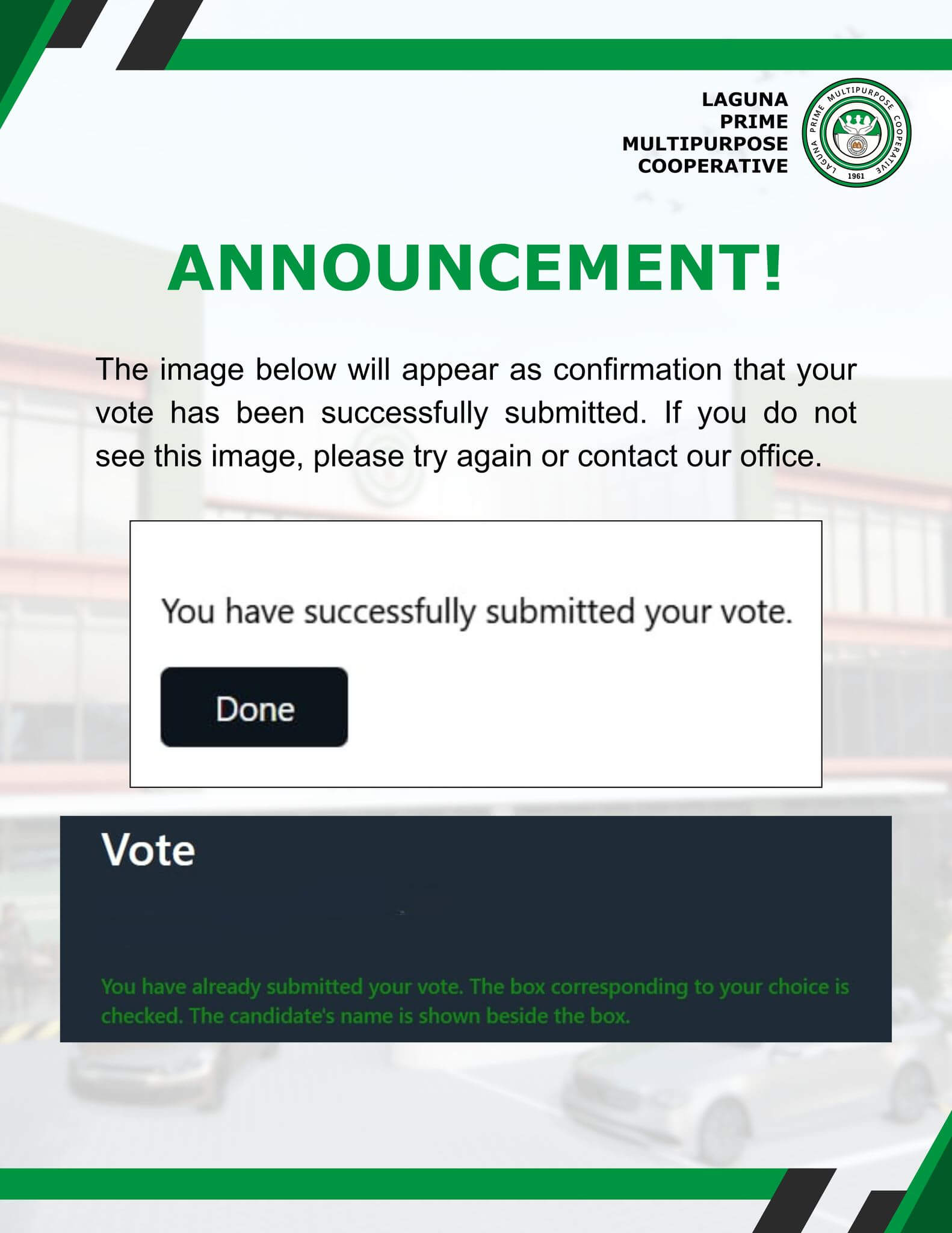 The provided image will appear as confirmation that your vote has been successfully submitted. If you do not see this image, please try again or contact our office.