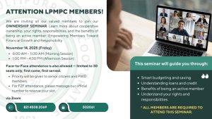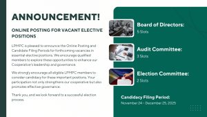 Please be informed that the LPMPC Sacay Office will be CLOSED on Friday, December 5, 2025 due to our cooperative’s major milestone celebration.